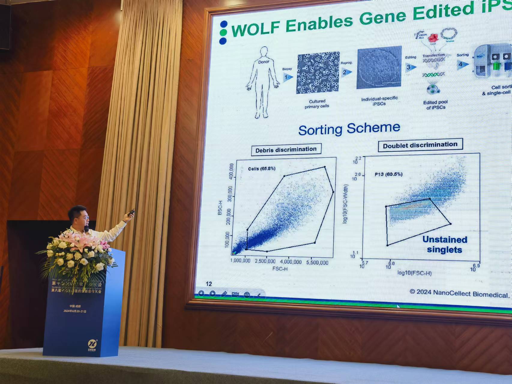 同騰睿杰的合作伙伴nanocellect公司的Asia Pacific Channel Manager——林然博士,受邀在大會上為我們帶來了精彩絕倫的演講。他詳細介紹了柔性微流控分選技術在干細胞與脆弱細胞研究中的前沿應用,并深入探討了該技術在細胞生物學領域中的巨大潛力。
