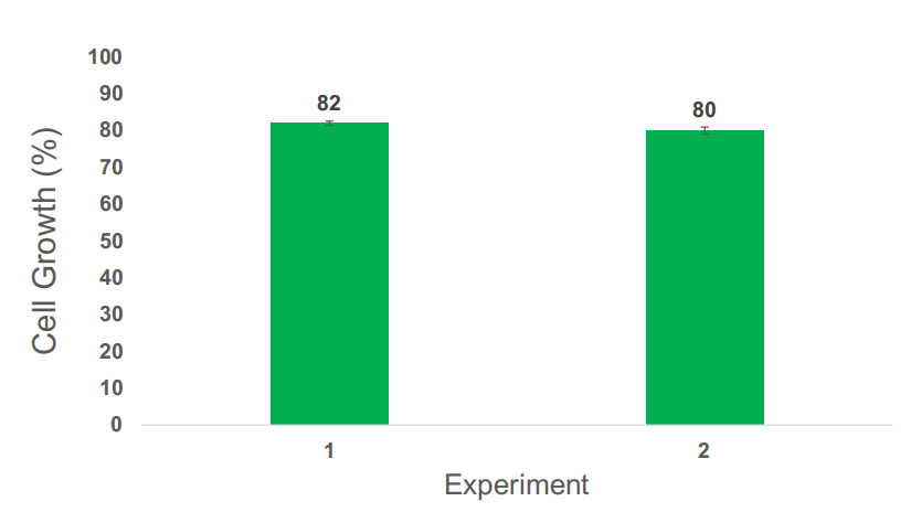 在三周的時間內進行了五次獨立實驗,大量富集GFP陽性的萊茵衣藻。五個樣本是通過以不同比例將CC-4533(WT野生型)和CC-5416(GFP)細胞混合在一起制備得到。藍條代表分選前藻類陽性細胞占比,綠色條代表富集后的GFP陽性細胞占比。誤差線表示N=2個技術重復的標準偏差。